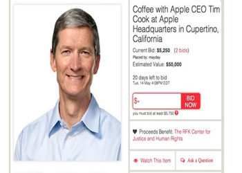 Bids at the charity site Charitybuzz, to spend half an hour with Cook over a coffee, overshot the initial expectation of $50,000 to $210,000. The bidding reached to $160,000 by the end of the first day itself, reports CNet.