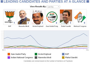 Facebook’s election page for 2012 U.S. elections offered elaborate updates with tons of data in easily consumable snapshots, it is time to see how it will repeat the same magic in Indian elections too.