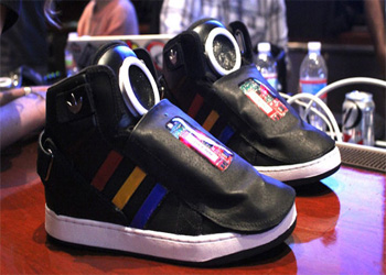 The shoe can tell what you are or aren't doing (with funny jabs) and can then relay that information to your phone via Bluetooth or via the speaker and a small screen fitted on top of the shoes.
