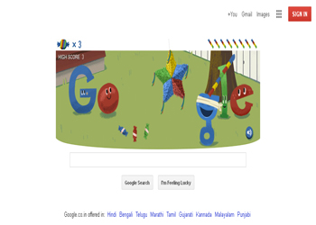 The blindfolded, second 'G' alphabet holds a stick with which you have to hit the piñata when it comes close, to try and extract the maximum number of candies in ten limited hits. Press the space bar or click the mouse to hit piñata, checks how many candies you can get. You can even share the score on Google+.