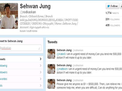 Sehwan Jung Mystery: He takes the liberty to give away his account number and bank details for free on twitter