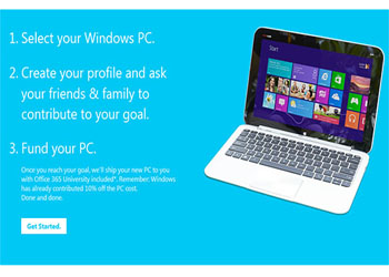 The students can go to the Chip In website and find a PC they want to get from a list of eligible products. Then they have to create a "giving page" on the site and send the URL to their friends and family through emails or social media, asking them to chip in to help them buy a tablet or laptop.