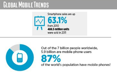 Here are some statistics from their infographic that show how the mobile phone is an inseparable part of our lives, and throw some light on the emerging mobile trends: