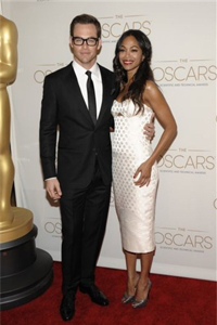 The Star Trek costars Saldana and Pine joined forces to host Sci-Tech Oscars, and the whole crew of the Starship Enterprise was down on earth.