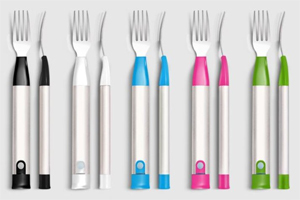 # The Fork That is Your Mom: The most ridiculous tech tool would the ‘Hapifork’. This device monitors how much you eat and what you eat, with the food habits being tracked by a Smartphone. The fork warns you by vibrating and lighting up to eat slowly if you eat too much. It has two lights at the bottom, the small bar indicates the charge and there is a circular one for the indications of your eating habits. This circular light turns red and vibrates if you are eating fast and turns green when you eat at a good speed.