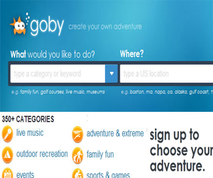 Goby.com is a search engine for the traveler. It lets users search through 400 categories for things to do while they travel. Users are asked to input the kind of activity they want, their desired location and the desired date. Related results are shown accompanied with the maps of the area. Users can also share information using the Facebook connect option.