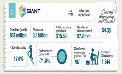 7. Giant Interactive: The third online game developer company on this list, Giant Interactive is a Chinese online game developer and operator that mainly focuses on massively multiplayer online role playing games (MMORPG). It operates a number of online games which include the Zheng Tu (ZT) Online series. Its performance since it went public also registered negatively at -71.9 percent