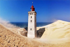 Details: Rubjerg Knude Lighthouse is an abandoned lighthouse situated on the coast of the North Sea in Northern Denmark. The construction of this lighthouse was started in 1899 and on 27 December 1900, first time the light lit in the lighthouse. Placed at a height of 200 feet (60 metres) above sea level, the lighthouse was built on the top of Lonstrup Klint (cliff).