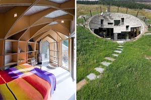 This ultra modern hobbit house is located in the side of a hill in Switzerland. This hobbit house was designed by a Dutch architecture firm and it looks like the house sunk into the mountain. A huge patio is a distinctive feature of the house, which opens up to provide an elliptical view of the mountains.