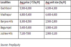 200,000 per square yard. An average flat in Hyderabad’s Jubilee Hills locality will costs around