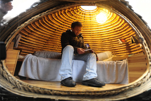 Instead of paying high rents, Dai Haifei, a 24 year-old architect in Beijing built an egg shape house for himself. This six-foot tall, solar-powered ‘Egg House’ is made up of bamboo, wood and grass seeds, which grows in the natural environment and is cold-proof. This house costs $964 and can accommodate a bed, a water tank and a night table. This small egg shaped house actually fits on the sidewalks.