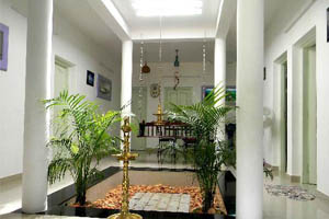 In Kerala architecture, central courtyard has always been a part of it and the architectural style is known as Nallukettu Style. The central courtyard or Nadamuttom type construction has got several advantages. It allows good amount of natural lighting and fresh air inside the house and thereby connects the house with the outside atmosphere. This type of architecture minimizes the heat inside the house and also persuades the connectivity between the inhabitants. Another benefit of these courtyards is that the place can be used as a play area for children. However, this architectural style in modern homes has undergone a slight change due to security concern and so these courtyards are now covered with steel railings or thick glasses.