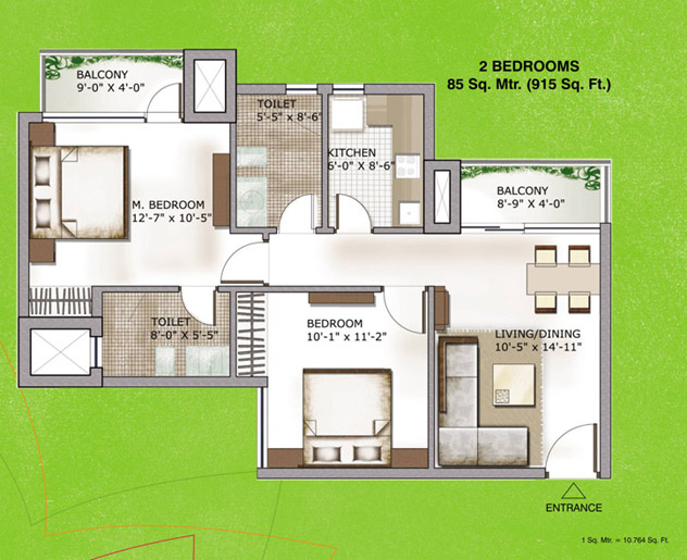 85 Sq. Mtr. (915 Sq.Ft.) |