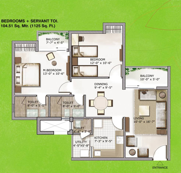 104.51 Sq. Mtr. (1125 Sq. Ft.) |