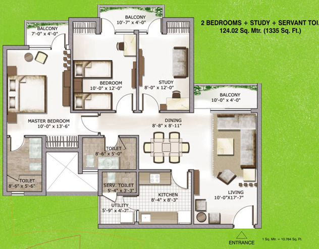 124.02 Sq. Mtr. (1335 Sq. Ft.) |