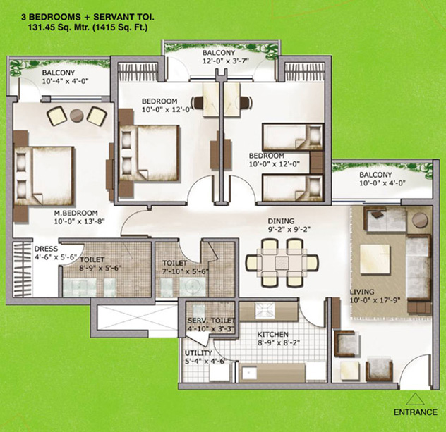 131.45 Sq. Mtr. (1415 Sq. Ft.) |