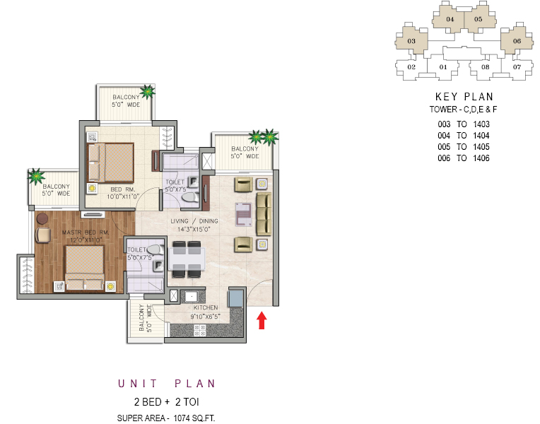 2BED + 2 TOI (1074 SQ.FT