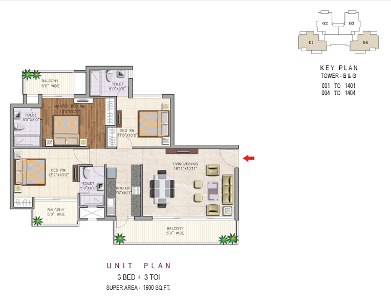 3 BED + 3 TOI (1600 SQ.FT)