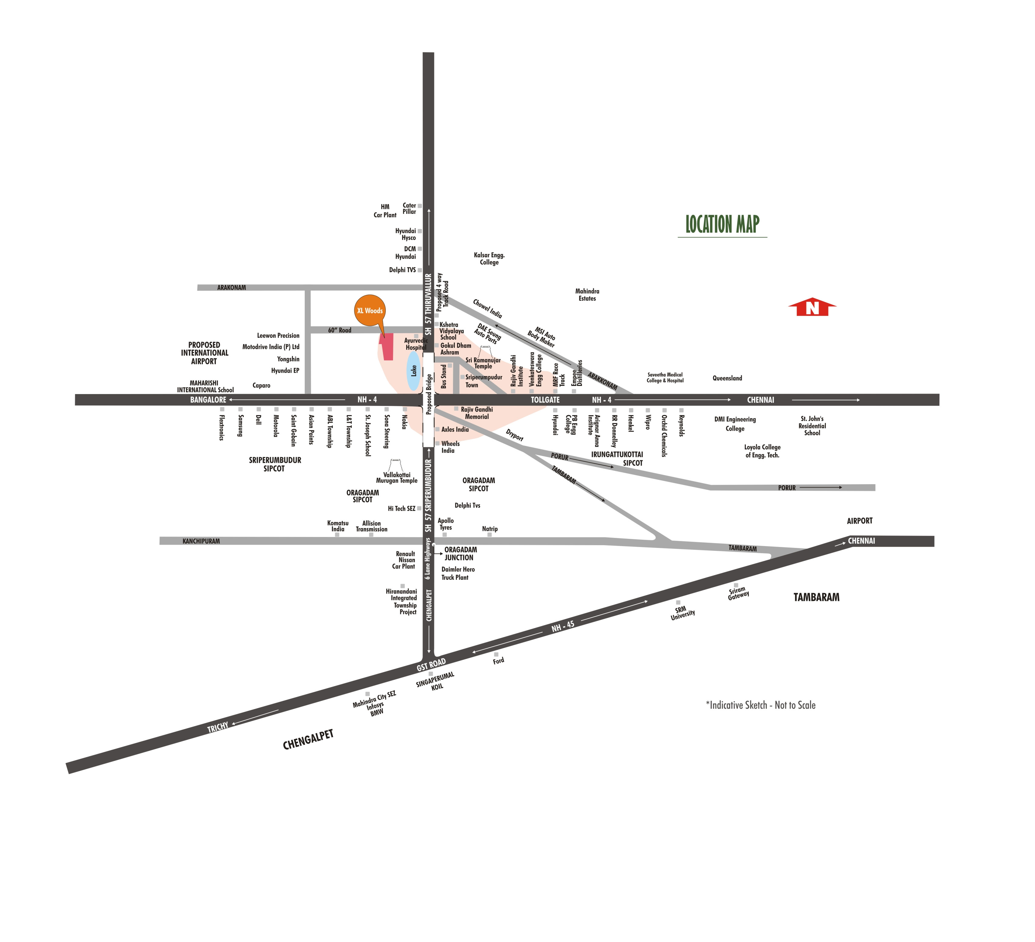 The single most outstanding & attractive feature of xl woods is its advantageous & prominent location, Nesting majestically in an ornately landscaped site area , just off the NH 4, this world-class retreat enjoys enviable & close proximity to major multinational companies such as Hyundai , Saint, Gobain, Samsung, Flextronics, Nokia , Motorola, many other electronic , telecom and automobile industrial establishments are in the vicinity. The project is located in the midst of residential townships and high-end gated communities and is enveloped on all sides by renowned educational institutions, hospitals and entertainment zones.