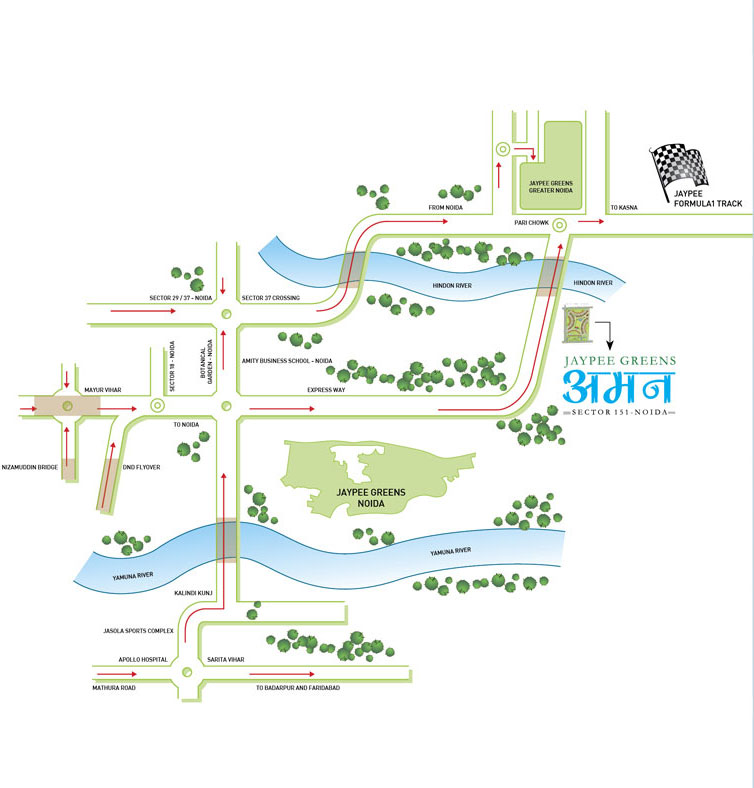 - Located in Sector 151, connected through 45 meters wide sector road from the Noida – Greater Noida Expressway. Just 30 minutes driving distance from South Delhi