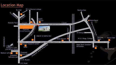 The Project is located between ITPL and Hoskote just off the National Highway at a time distance of 10 minutes from ITPL.