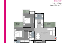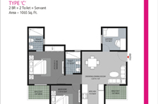 2BR + 2 Toilet + Servant - 1065 Sq. Ft.