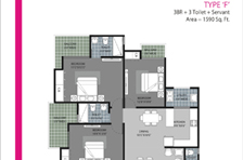 3BR + 2 Toilet + Servant - 1590 Sq. Ft.