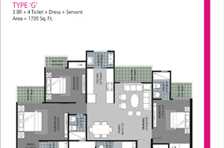 3BR + 4 Toilet + Dress + Servant - 1705 Sq. Ft.