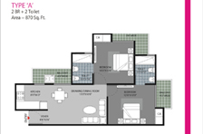 2BR + 2 Toilet - 870 Sq. Ft.