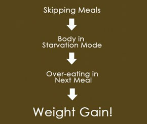 If the solution to losing weight is cutting calories then why not cut a bunch at once by skipping a meal? Many studies show that meal skippers weigh more than healthy meal eaters. Starving yourself actually does the opposite of what you are trying to achieve on a diet. Depriving your body of calories slows down your metabolism and in turn, you body tries to conserve energy by slowing down the burning of calories. Leading to ravenous hunger and over-eating at night. Instead, stick to small meals six times a day or three proper balanced diet meals including a healthy breakfast.