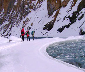 Walking on Frozen river of Zanskar is an ultimate experience for adventure lover. The traditional name of the trek is "Chadar trek" the frozen sheet, which was only way in and out for Zanskaris in winter when all other ways are closed due to heavy snow fall at high passes. It is located in Ladakh with an altitude of 3850 mts/12628 ft.