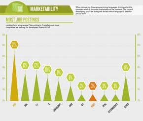 The marketability of a language is measured by considering the availability of jobs and the number of developers working on a specific platform. In both the cases, PHP leads the list. According to Craiglist.com, most companies are looking for PHP developers. Monster.com also has the most openings for PHP developers, followed by Ruby and then Python. The number of PHP developers in Linkedin reach to 19,000 followed by Python at 1316 and Ruby at 720 as of Dec 2011.