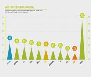 The IEEE spectrum used the data obtained from the internet relay chat to find the most discussed language. According to the data, Python is most popular with 11 percent followed by PHP at 7 and Ruby with 4 percent. The “other” languages contribute to a 29 percent.