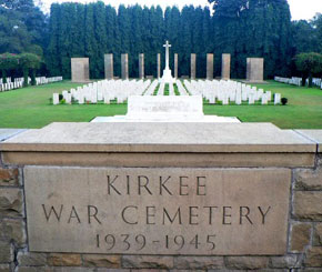 Kirkee, also known as Khadki, is a Military Cantonment adjoining the large university town of Poona on the Plateau above Bombay. Kirkee War Cementry was created to receive Second World War graves from the western and central parts of India where their permanent maintenance could not be assured. The cemetery contains 1,668 Commonwealth burials of the Second World War. The Kirkee Memorial stands within the cemetery and commemorates more than 1,800 servicemen who died in India during the First World War, who are buried in civil and cantonment cemeteries in India and Pakistan where their graves can no longer be properly maintained. This total includes the names of 629 servicemen whose remains were brought from Bombay (Sewri) Cemetery for re-interment here in 1960. On the same memorial are commemorated almost 200 East and West African servicemen who died in non-operational zones in India in the Second World War, and whose graves either cannot be located or are so situated that maintenance is not possible.