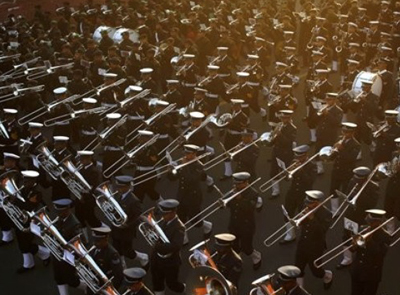 Combined Bands of the Navy and the Air Force: The last bands to perform are the combined bands of the Navy and the Air Force. This part of the ceremony ends with their compound march.