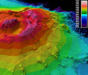 The Rumble III seamount, the largest of the Rumbles seamount group along the South Kermadec Ridge, rises 2300 meter from the sea floor to within about 200 meter of the sea surface. Rumble III sits on the southern ridge of the Kermadec Arc of about 100 submarine volcanoes.