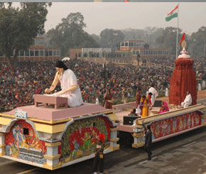Orissa showcased it “Jayadev and Gitagovinda” themed tableau last year. The Classical Sanskrit Literature “Gitagovinda” by the saint poet of Orissa Sri Jayadev, is depicted in the Tableau showcasing the rich literary and cultural heritage of the State.