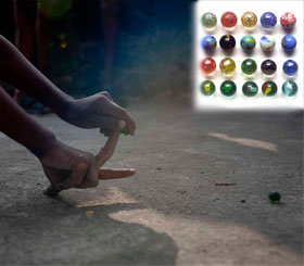 Kancha(Goti):  Rounded green glass balls(also called Kancha) aimed with the right trajectory at another goti can split it into two. This game famous in country side has kids winning and displaying their ostentatious collection to the other street kids.