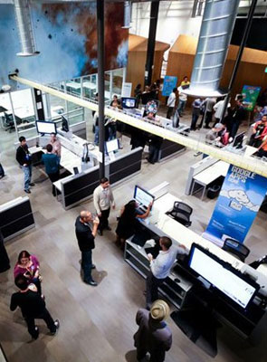 Office is arranged with open cubicles and shared ones, which host three to five engineers per cubicle.
