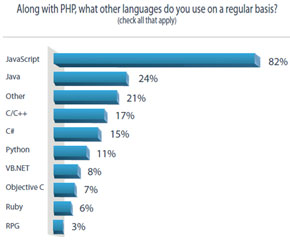 With the use of more open source technologies for production, PHP is gaining more interest among programming languages. 65 percent of SMB developers and more than 50 percent of enterprise developers spend majority of their time working in PHP. More than 33 percent of the developers use one or two additional language like Java with PHP. All this points that companies now rely on open source programming languages for development.