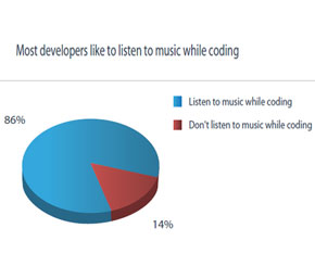 Music seems to inspire the productivity to most of the developers as around 86 percent listen to music while coding. According to them, it will help to ‘get into zone’.