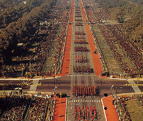 The Republic day parade of India has rightly become the one of the world’s famous and greatest shows which draws Thousands of visitors. The main specialty of this parade is the march past by the different regiments of the army, Navy and the Air force who  in all their splendid uniforms, finery and official decorations even the horses of the cavalry are attractively caparisoned to suit the occasion. National Cadet Corps (N.C.C) cadets from all over are country are selected and picked through prior screenings, who consider it an honour to participate in this event.