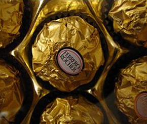 Ferrero Rocher: This Italian chocolate is a typical indulgence for those who love variety. The core consists of roasted hazelnut encompassed within a wafer shell filled with hazelnut cream. The outside of the wafer is covered with milk chocolate, and chopped hazelnut.