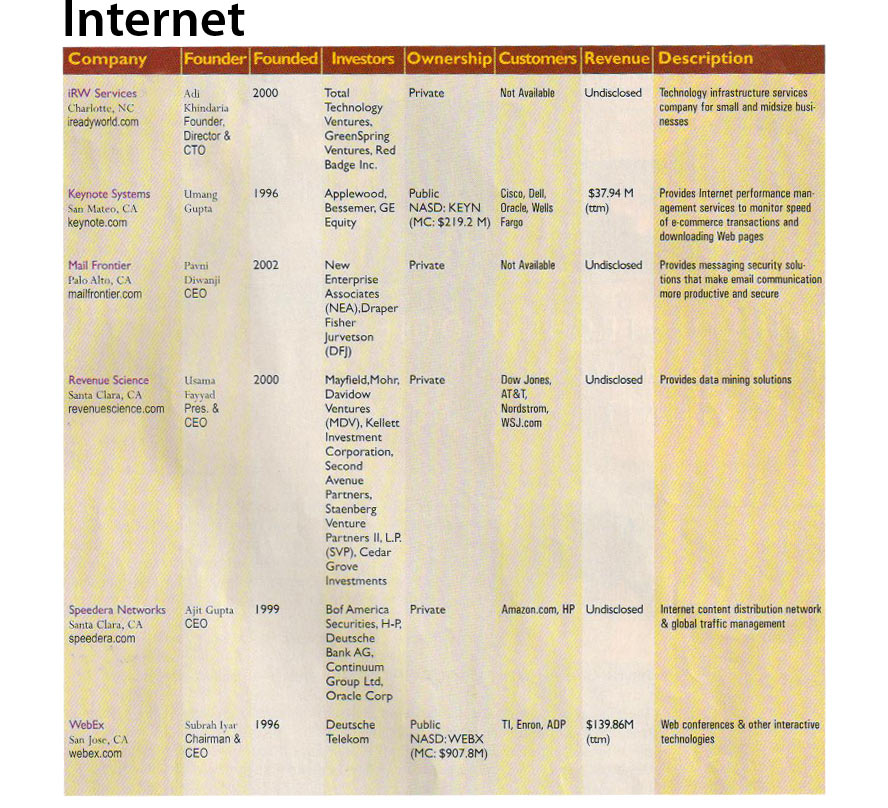A distinguished panel comprising accomplished Indian CEO's & CIO's of public companies, VC's, analysts, founders of other VC funded companies including siliconindia editorial board decided on the top 100 companies listed below.